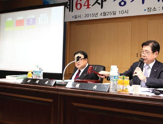 감사보고에서 30~40분에 걸쳐 격론을 벌이고, 일반안건에서 또 다시 조사위원회 구성안으로 힘겨루기가 진행됐지만, 결론은 찬성 62표 대 반대 110표로 부결됐다.