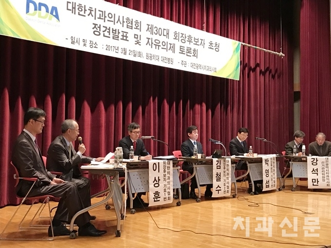 대한치과의사협회 제30대 회장후보자 초청 정견발표 및 자유의제 토론회가 지난 21일 원광대학교치과대학대전병원에서 개최됐다. 지난 4일 제주를 시작으로 총 13회에 걸친 후보자 초청 토론회가 대전에서 비로소 마무리됐다.
