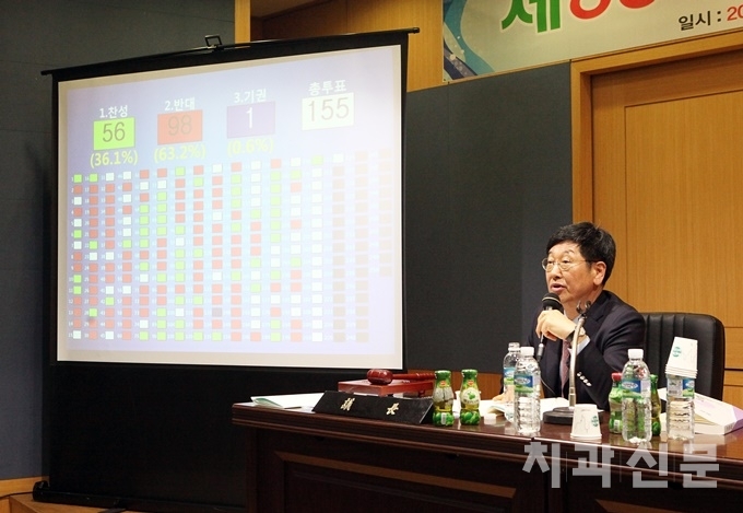 하지만 대의원 투표결과 해당 안은 과반을 넘지 못했다. 총 155명의 재석 대의원 중 찬성 56표, 반대 98표, 기권 1표로 부결되고 말았다.