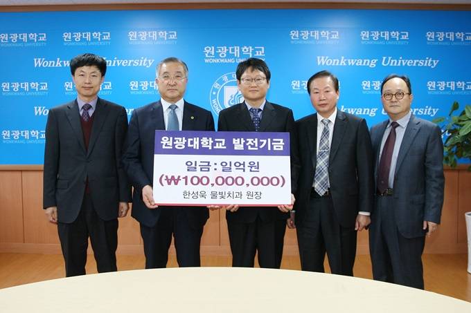 원광대학교 치과대학 동문인 한성욱 원장(대전물비치과, 2005년 졸업)이 모교 발전기금으로 1억원을 쾌척하기로 약정했다.