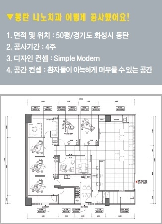 오스템임플란트가 고객만족에 최우선한다는 모토로 시작한 ‘오스템인테리어’는 지난해 100호점을 돌파, 올해 더욱 확대될 전망이다. 본지는 인테리어의 브랜드화를 선언한 오스템 인테리어의 결과물을 직접 찾아 소개한다. 이번 호는 그 스무 번째 시간으로 경기도 화성시 동탄신도시에 위치한 나노치과 송현석 원장을 만나 오스템 인테리어에 대한 평가와 진료 컨셉 및 철학을 들어봤다. [편집자 주] |
