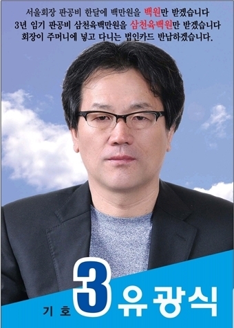 기호 3번 유광식 “한 달 판공비 100원, 법인카드 반납”