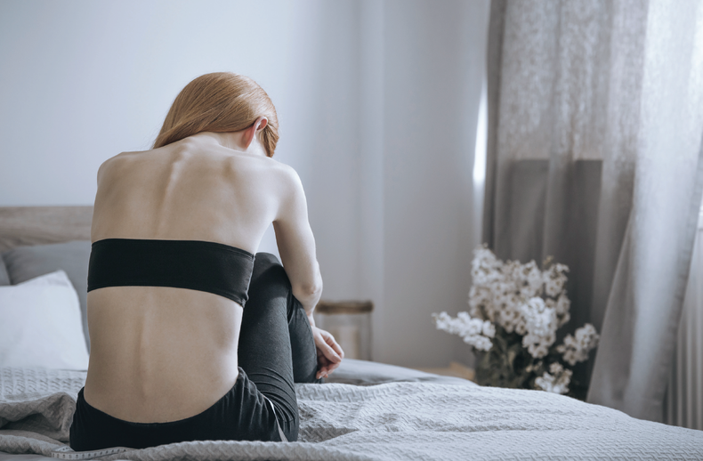 신경성 거식증(anorexia nervosa)은 섭식장애 가운데 제일 위험한 병입니다. 서두에서 중간 정도가 딱 좋은데 너무 먹거나 안 먹는 이야기를 했지요. 신경성 거식증은 너무 안 먹는 것이 병의 증상이기에 목숨을 잃는 경우도 생깁니다. 실제로 외래에서 만났던 분은 키가 160센티였는데 체중이 38kg이었습니다. BMI를 계산해보면 14.8, 심각한 저체중 상태로 진료하는 제가 가슴이 철렁할 만한 숫자였습니다.