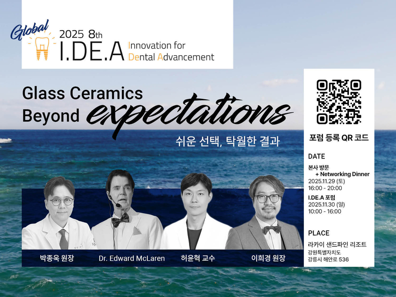 제8회 I.DE.A 포럼은 ‘Laminate veneers that resemble nature’을 주제로 한 박종욱 원장(드림치과)의 강연으로 시작된다. 이어 △Dr. McLaren (DDS MDC CEO of ArtOral America)의 ‘The evolution of ceramic technologies with the human touch’ △허윤혁 교수(강릉원주치대)의 ‘강도와 클리니컬 효율을 강조한 글라스 세라믹의 전략적인 보철수복 방법’ △이희경 원장(이희경덴탈아트치과)의 ‘beyond fracture: 장기적인 글라스 세라믹 수복을 위한 임상적 노력’ 등의 강연이 예정돼 있다.