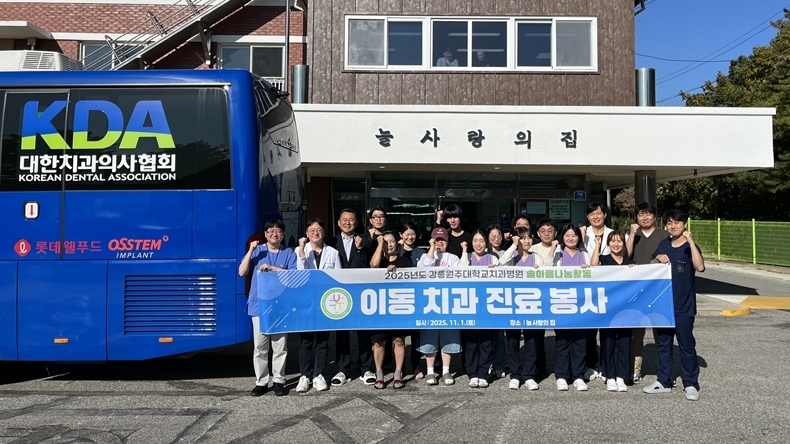 [치과신문_김영희 기자 news001@sda.or.kr] 강릉원주대학교치과병원(원장 박찬진·이하 강릉원주대치과병원)이 강릉시 강동면에 위치한 장애인 복지시설 ‘늘사랑의집’에서 이동진료봉사를 진행했다.