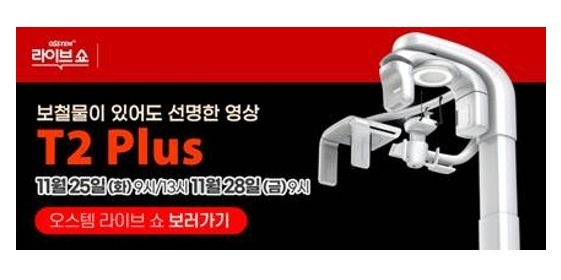 오스템 라이브쇼 관계자는 “T2 Plus는 임플란트 플래닝 기술을 적용해 클릭 몇 번으로 임플란트 직경이나 길이, 매스까지 자동으로 결정되는 등 치료계획 수립 시 도움을 주는 CBCT”라며 “촬영 시 금속 보철물 빛 번짐 처리도 우수해 정확한 진단까지 가능하다. 치과의사들의 합리적 소비에 도움을 주기 위해 이번 방송을 준비한 만큼 많은 시청 바란다”고 전했다.