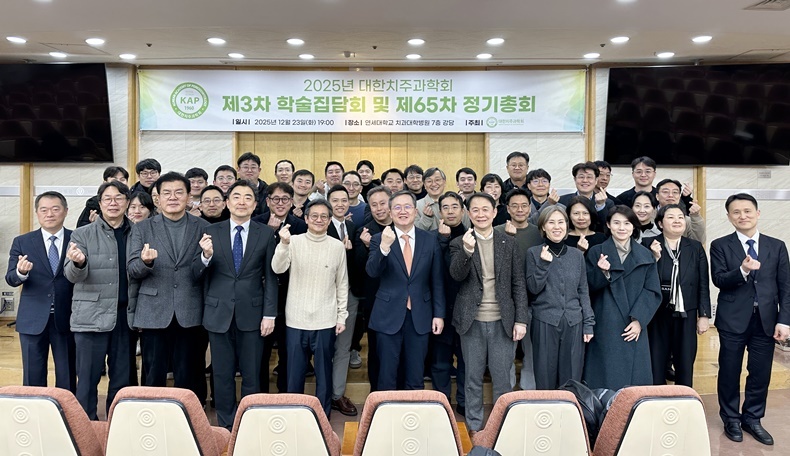 [치과신문_최학주 기자 news@sda.or.kr] 대한치주과학회(회장 설양조·이하 치주과학회)가 지난 12월 23일 연세대치과병원에서 회원 190명이 참석한 가운데 ‘2025년 제3차 학술집담회’를 개최했다. 이번 집담회는 해외 연수를 마치고 복귀한 신현승 교수(단국치대)와 차재국 교수(연세치대)가 연자로 나서 최신 임상 지견을 공유했다.