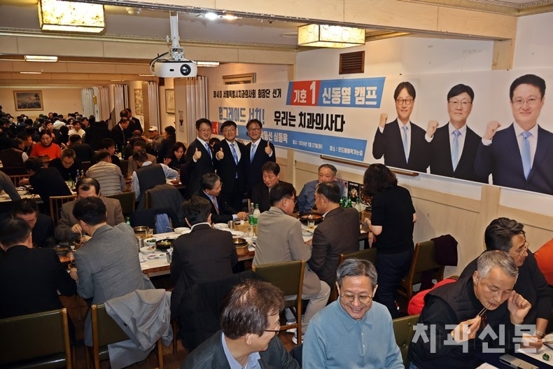 대한치과의사협회 회장단 선거에 출마를 선언한 김홍석·강충규 예비후보, 그리고 출마선언을 앞두고 있는 대한치의학회 권긍록 회장과 박영섭 치협 前 부회장 등도 현장을 찾았다. 오스템임플란트 최규옥 회장과 대여치 허윤희 前 회장 등 신동열 후보의 출신대학인 서울치대 동문 다수와 경희치대동창회 김소현 회장 등 함동선 부회장후보의 경희치대 동문들도 대거 출동했다. 심동욱 부회장후보를 지지하는 연세치대 동문들도 그룹을 이뤄 자리하는 등 세를 과시했다.