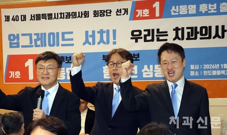 [치과신문_전영선 기자 ys@sda.or.kr] ‘업그레이드 서치! Goodbye 불법! Boosting 자존감! Support 병원경영!’를 내걸고 서울시치과의사회(이하 서울지부) 제40대 회장단 선거에 출마한 기호1번 신동열 회장후보-함동선·심동욱 부회장후보가 지난 1월 27일 출정식을 갖고 세 과시에 나섰다.