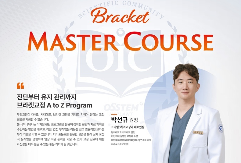 오스템임플란트(이하 오스템)가 오는 3월 7일부터 6월 14일까지 오스템 마곡 중앙연구소에서 박선규 원장(프라임S치과)이 디렉터로 나서는 ‘브라켓 마스터코스’를 총 10회에 걸쳐 진행한다. 최첨단 장비와 실습실을 갖춘 오스템 본사에서 세미나가 열리는 만큼 실전처럼 직접 체험할 수 있도록 구성해 몰입도를 높인다는 계획이다.