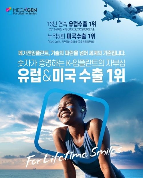 관계자는 “세계 최초 기술로 임플란트 역사를 써 내려가는 메가젠은 유럽·미국 수출 1위 기록으로 그 위상을 공고히 하며, K-임플란트 기술의 새로운 미래를 만들어가고 있다”고 강조했다.