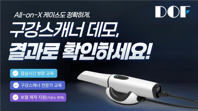 [치과신문_이가영 기자 young@sda.or.kr] 디지털 덴티스트리 솔루션 전문 기업 디오에프(DOF)가 자체 개발 구강스캐너 FREEDOM Air를 중심으로 ‘찾아가는 방문 데모’ 프로그램을 확대 운영하며 호평을 얻고 있다.