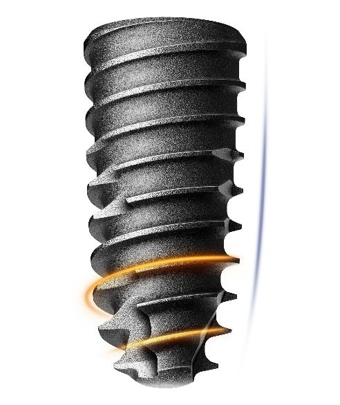 샤프한 에이펙스가 초기 진입 시 정확한 방향 설정을 유도하기 때문에, 발치와처럼 뼈의 형태가 불규칙하고 미끄러지기 쉬운 환경에서도 원하는 위치에 안정적으로 자리를 잡을 수 있다. 이 네 가지 요소가 톱니바퀴처럼 맞물려 작동해 극한 환경에서도 초기고정을 이끌어낼 수 있다.