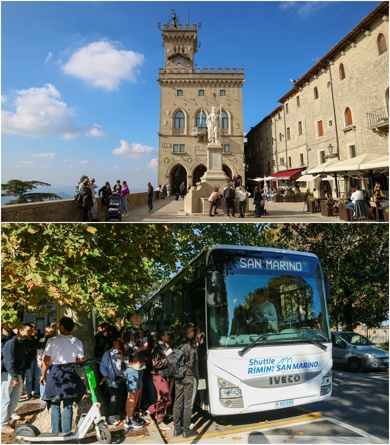 피렌체와 베네치아 사이에 위치한 볼로냐에 숙소를 두고 하루 일정으로 리미니, 산 마리노 공화국을 묶어서 당일치기 여행으로 다녀오거나, 리미니에서 1~2박 머물며 산 마리노 공화국도 다녀오고 근처에 라벤나도 다녀오는 일정으로 계획해도 좋다(리미니-산마리노 버스로 약 50분 / 리미니-라벤나 기차로 약 40~45분).