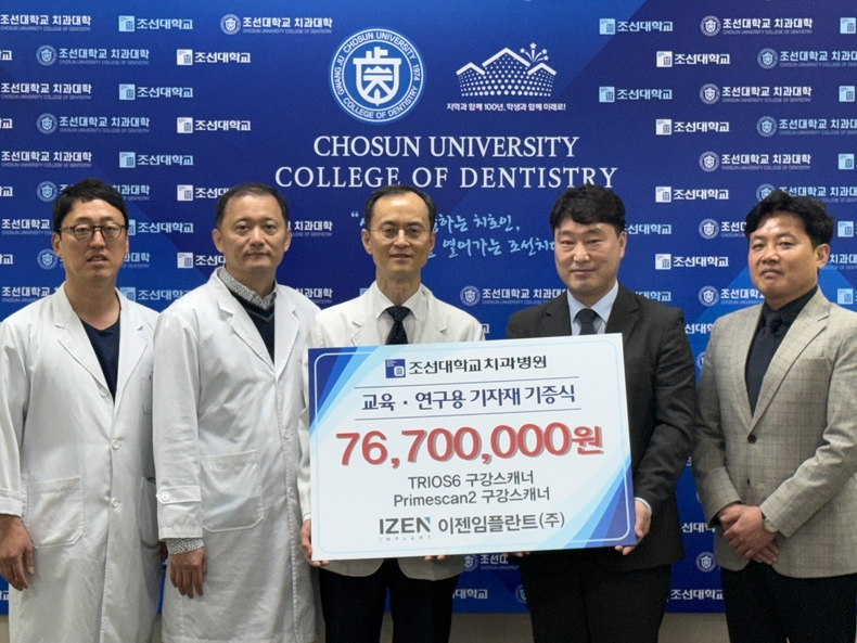 이젠임플란트 김주석 대표는 “이번 기증을 통해 조선대치과병원의 교육과 연구 환경이 한층 강화되길 기대한다”며 “앞으로도 디지털 치과 분야 발전과 인재 양성을 위한 지원과 협력을 이어가겠다”고 밝혔다.