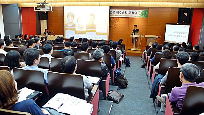 이날 세미나에는 160여명이 참석해 경희대치과병원 지하 강당을 가득 채웠다. 수용인원을 넘기면서 많은 참가자가 서서 강연을 듣는 진풍경을 연출하기도 했다. 돌출입, 거미스마일 등 수술영역의 케이스를 교정만으로 치료할 수 있는 새로운 술식에 대한 개원가의 높은 관심을 확인할 수 있었다.