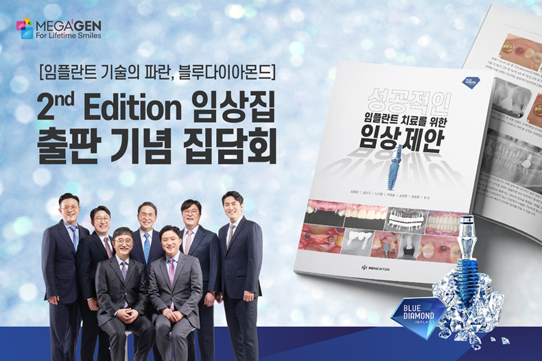[치과신문_신종학 기자 sjh@sda.or.kr] 임플란트 연구와 교육에 힘쓰고 있는 메가젠임플란트(대표 박광범·이하 메가젠)가 오는 12월 4일 메가젠 강남사옥에서 ‘블루 다이아몬드 2nd Edition 임상집-성공적인 임플란트 치료를 위한 임상 제안’ 출간을 기념해 집담회를 개최한다.