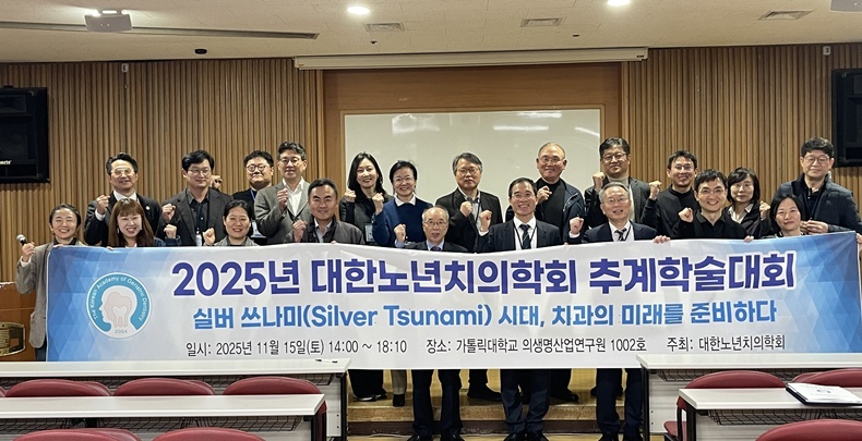 [치과신문_신종학 기자 sjh@sda.or.kr] 대한노년치의학회(회장 소종섭·이하 노년치의학회)가 지난 11월 15일 가톨릭대 서울성모병원에서 2025년 추계학술대회를 개최했다. ‘실버 쓰나미 시대, 치과의 미래를 준비하다’를 대주제로 열린 이날 학술대회에서는 노인환자에 대한 보철, 치주, 임플란트 등 임상 관련 강연뿐만 아니라 방문치과진료, PDRN 등 다양한 학술 강연이 진행됐다.