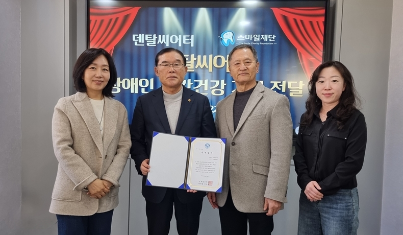 지난 2월 25일 덴탈씨어터 이석우 회장과 차가현 원장은 스마일재단(이사장 이수구) 사무국을 직접 방문해 ‘장애인 구강건강기금’으로 써달라며 기금을 전달했다.
