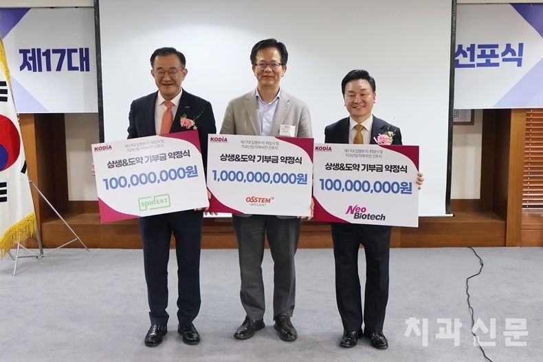 이날 행사에는 치산협 발전기금 약정식도 진행됐다. 메디클러스가 5,000만원을, 안제모 前회장이 1억원을, 그리고 허영구 회장이 1억원을 각각 약정했다. 특히 오스템임플란트 최규옥 회장은 10억원의 발전기금을 약정해 참석자들의 큰 박수를 받았다.