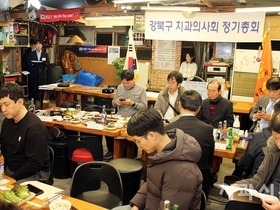 [치과신문_최학주 기자 news@sda.or.kr] 강북구치과의사회(회장 박경오·이하 강북구회) 제31차 정기총회가 지난 2월 9일 개최됐다. 약 50명의 회원이 참석한 가운데 향후 2년간 강북구회를 이끌어갈 신임 회장으로 손찬형 前 회장을 만장일치로 추대했다. 손찬형 신임회장은 이번 재임으로 코로나19 팬데믹으로 대외 활동이 전반적으로 위축됐던 2020년부터 2022년 총회까지 강북구회 회장으로 활동했던 아쉬움을 털게 됐다. 이번 총회를 끝으로 임기를 마무리한 박경오 회장은 “2년이 이렇게 금방 지나가 아쉽기도 하고 후련하기도 하다. 임기 초 총무이사와 모든 반회를 돌며 회원들의 의견을 청취하면서 보람을 느꼈고, 젊은 회원들을 집행부 이사로 많이 영입해 든든한 마음으로 떠날 수 있게 됐다”며 “새롭게 선출될 집행부가 강북구회를 더욱 성장시켜줄 것으로 믿고 회원 여러분의 관심과 성원을 당부드린다”고 말했다. 본격적인 총회에서는 회무·결산·감사보고가 원만하게 통과됐다. 감사단은 박경오 집행부에 대해 “역동적인 회무 추진과 소통 중심의 회무 운영이 돋보였다”고 평가했으며, 건치아동 선발, 스크린골프대회, 보수교육, 회원 산행대회, 회장배 당구대회 등 2026년도