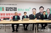 [치과신문_최학주 기자 news@sda.or.kr] “치과계 안팎의 모든 불법을 끝까지 바로잡고, 비정상적인 치협을 정상화하겠다. 묵묵히 진료하는 평범한 치과의사가 아무 걱정 없이 진료에만 전념할 수 있는 환경을 반드시 이뤄내겠다” 대한치과의사협회(이하 치협) 제34대 회장단 선거에 출마한 기호 1번 김민겸 회장 후보가 장재완·최치원·최유성 부회장 후보와 함께 지난 2월 13일 ‘플러스캠프’ 개소식을 열고 본격적인 선거전에 돌입했다. 이날 개소식에는 안성모·김세영·이상훈 前 협회장과 서울지부 강현구 회장 등 100여명이 참석해 성황을 이뤘다. 3년 전 선거에서 협회장 후보로 경쟁했던 장재완, 최치원 후보와 한 팀을 이룬 김민겸 회장 후보는 캠프 명칭을 ‘플러스캠프’로 정하고 “불법 덤핑 치과 척결! 의료악법 철폐! 치대정원 감축!”을 슬로건으로 제시했다. 김민겸 회장 후보는 “그간 불법을 바로 잡으려 했던 저를 회무 중단세력이라고 비난했던 협회가 과연 회원들을 위해 한 일은 무엇인지 묻고 싶다”며 “치협 박태근 회장과 선출직 부회장단 3인의 당선을 무효로 한다는 2심 판결이 1심에 이어 다시 선고됐다. 그동안 치협이 부정 선거 당사자들에게 불법적으로 점거돼왔