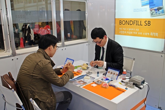 가장 주목을 받은 제품은 조광덴탈의 대표 아이템인 ‘Super- Bond’와 ‘Bondfill SB’였다. 조광덴탈은 전시 부스에 핸즈온 공간을 마련, 제품의 우수성을 직접 체험할 수 있도록 배려했다. 화학중합 레진 충전재인 ‘BondFill SB’는 수복물의 탈락을 막는 유연성, 내마모성, 그리고 우수한 조작성이 특징이다. 접착과 수복을 한 번에 시행할 수 있고, 광중합형 컴포짓 레진으로 대처하기 어려운 복잡한 케이스에 적합하다.