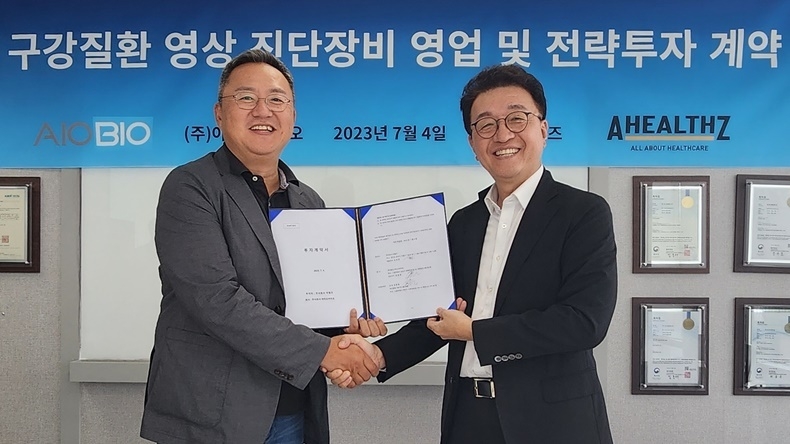 [치과신문_김영희 기자 news001@sda.or.kr] ㈜아이오바이오(대표 윤홍철)는 지난 4일, ㈜아헬즈(대표 김준연)와 투자계약체결식을 가졌다.