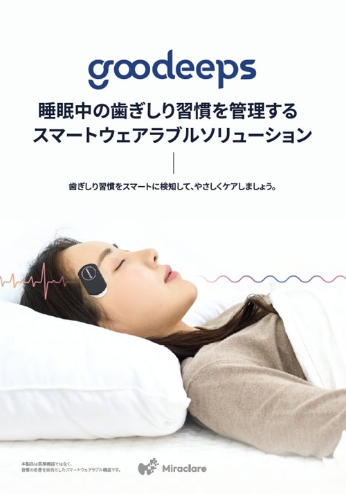 이번에 계약된 제품은 ‘굿딥스 모니터링’으로, 안면 근전도(EMG) 기술을 기반으로 수면 중 이갈이 및 이악물기 활동을 실시간으로 분석하는 웨어러블 디바이스다.