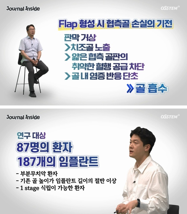 [치과신문_신종학 기자 sjh@sda.or.kr] 오스템임플란트(이하 오스템)의 논문 리뷰 프로그램 ‘저널인사이드(Journal Inside)’가 최근 두 편의 논문 리뷰 영상을 선보여 시청자들로부터 호평을 받고 있다.