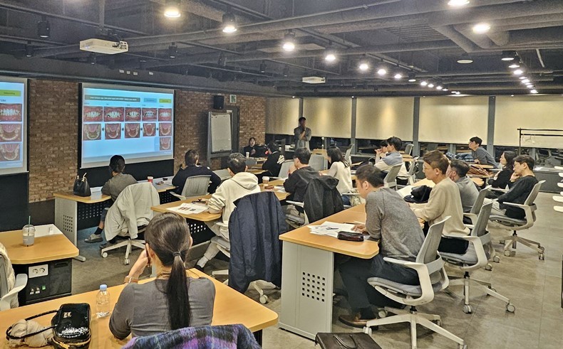 특히 상악 확장 장치, Class Ⅲ activator, 페이스마스크 등 전통적인 성장기 교정장치에서부터, 최근 주목받고 있는 투명교정장치를 활용한 비대칭 개선 접근법까지 폭넓게 다뤄 큰 관심을 모았다. 강의 후에는 각 장치의 디자인 원리, 작용 기전, 그리고 임상 효과에 대한 심도 있는 토론이 이어졌으며, 실제 임상 경험이 공유되는 뜻 깊은 시간이 됐다.