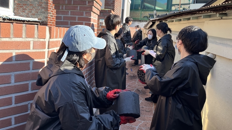 봉사단은 겨울철 난방비 부담을 덜어주고자 연탄 구입을 위한 후원금 200만원을 전달하고 강릉원주대 해람프로보노 봉사단과 함께 10가구에 200장씩 총 2,000장의 연탄을 직접 배달했다.