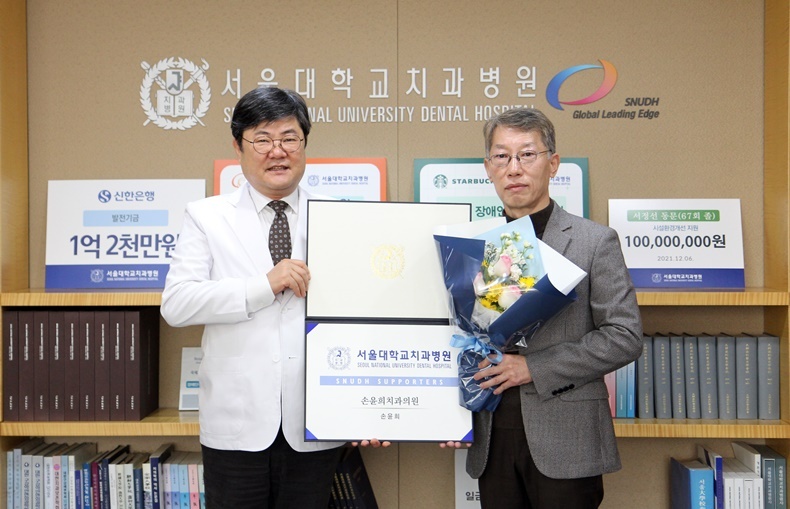 [치과신문_최학주 기자 news@sda.or.kr] 서울치대 45회 졸업생인 손윤희 원장이 후학들의 임상 교육 발전을 위해 사용해 달라며 서울대치과병원(원장 이용무)에 500만원을 기부했다.