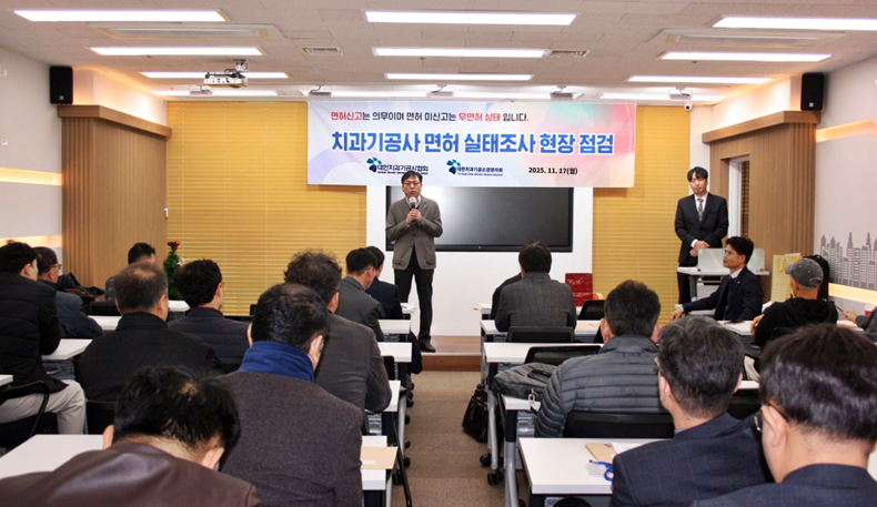 지난 11월 17일 실태 조사원을 대상으로 ‘치과기공사 면허 실태조사 현장 점검’ 교육을 실시하고, 2인 1조 총 20개팀(40명)으로 나눠 동시에 치과기공소를 방문하는 방식으로 실태조사를 진행했다.
