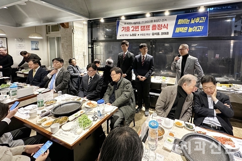 [치과신문_신종학 기자 sjh@sda.or.kr] 서울시치과의사회(이하 서울지부) 제40대 회장단 선거에 나선 기호 2번 노형길 회장 후보와 김석중·권태훈 부회장 후보가 지난 1월 28일 출정식을 진행했다.