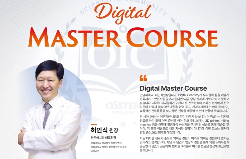 [치과신문_신종학 기자 sjh@sda.or.kr] 오스템임플란트(이하 오스템)가 오는 4월 18일부터 5월 17일까지 총 5회에 걸쳐 서울 강남 오스템연수센터에서 ‘디지털 마스터코스’를 진행한다.