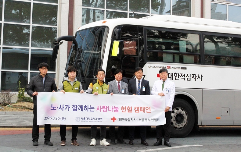 [치과신문_최학주 기자 news@sda.or.kr] 서울대학교치과병원(원장 이용무)이 지난 3월 20일 전국보건의료산업노동조합 서울대치과병원지부(지부장 박창호)와 공동으로 ‘2026년 노사가 함께하는 사랑나눔 헌혈 캠페인’을 개최했다.