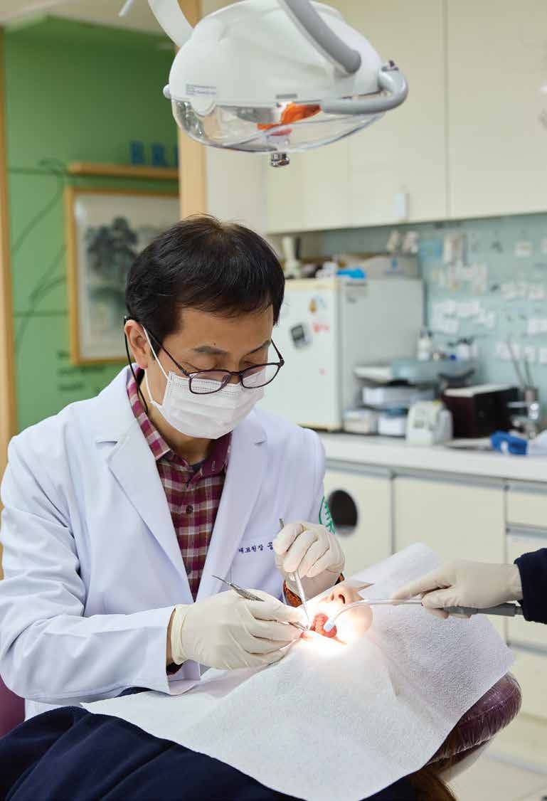 수많은 환자 가운데 공윤수 원장의 기억에 가장 깊이 남은 이들은 음악을 하던 쌍둥이 자매다. 개인 사정으로 사회와 단절된 채 오랜 시간 은둔 생활을 하던 그들은 극심한 저체중과 영양실조로 치아 대부분이 빠질 위기에 처해 있었다. 마취조차 감당하기 어려운 체력이었지만, 공 원 장은 여러 기관과 협력해 틀니부터 임플란트까지 장기간에 걸친 치료를 진행했다. “무조건 무료로 해드린 게 아닙니다. 나중에 건강을 회복하면 재능으로 봉사하며 갚으라고 했어요.” 치아뿐 아니라 삶의 의지를 되찾도록 격려한 그의 진심은 두 자매가 다시 세상 밖으로 나올 수 있는 힘이 되었다. 공 원장에게 치료란 단순히 치아를 고치는 일이 아니다. “환자의 마음을 만져 주는 의사가 되고 싶습니다.”