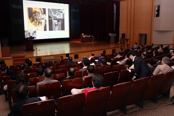 한편 라이브 서저리의 메인을 장식한 박광범 원장(미르치과병원)의 ‘스탠드 서저리 : 임플란트 수술의 한물간 유행인가? 새로운 패러다임인가?’는 이원생중계 방식으로 진행됐다. 박광범 원장이 미르치과병원에서 시술하는 장면을 코엑스에서 실시간으로 중계한 것.