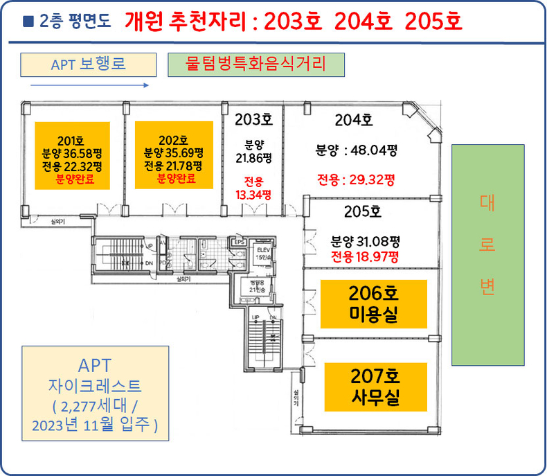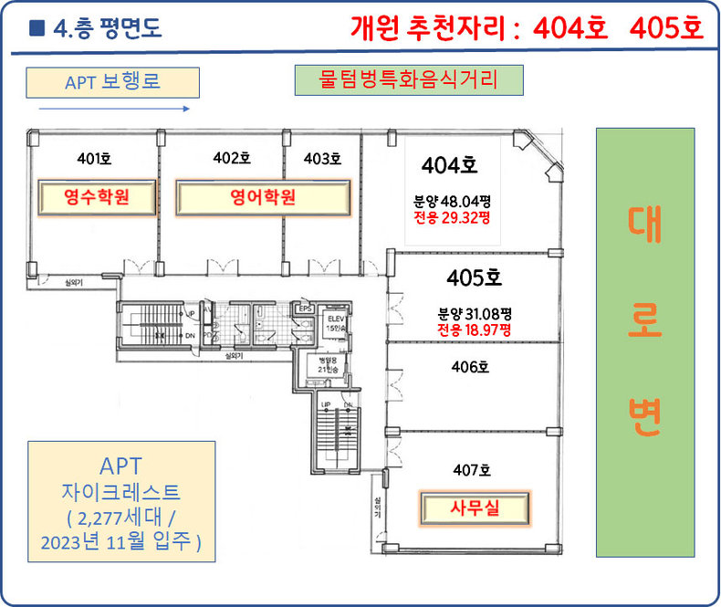입주 2년차 아파트(2277세대)앞에 위치해있으며