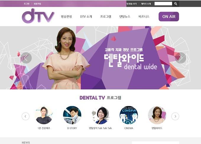 치과전문 인터넷 네트워크 방송 ‘DTV’(덴탈티비)가 새롭게 이목을 끌고 있다. 치과관련 영상제작 사업 전문 ‘다임’이 지난 2010년부터 치과와 환자 모두에게 양질의 콘텐츠를 제공하기 위해 준비한 덴탈티비(www.dentaltv.co.kr)가 사업을 본격화, 회원치과병의원 및 기업회원을 모집하고 있다.