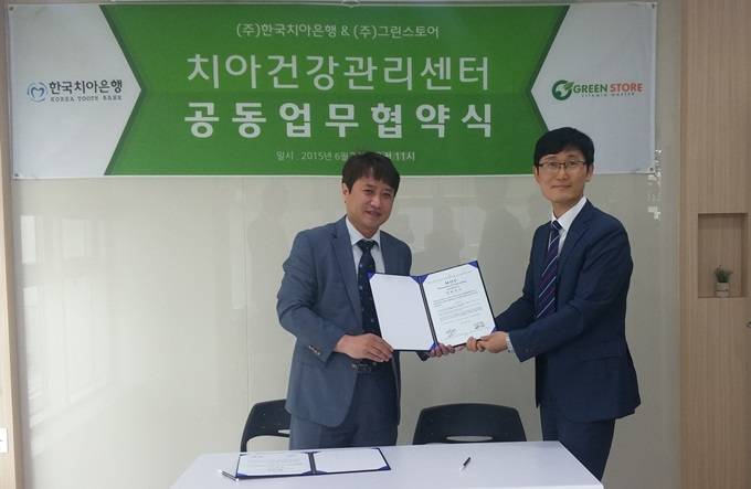 (주)한국치아은행(대표 백웅기)이 지난달 24일 ㈜그린스토어(대표 박영창)와 ‘전국 병의원 내 치아건강관리센터의 공동 운영’에 관한 업무협약을 체결했다.