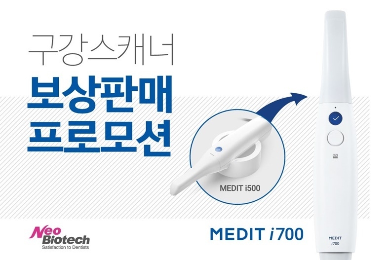 [치과신문_전영선 기자 ys@sda.or.kr] 네오바이오텍(대표 허영구·이하 네오)이 이달말까지 ‘구강스캐너 보상판매 프로모션’을 진행한다. ‘i500’을 반환하는 조건으로 최신형인 ‘i700’을 특별혜택가로 만나볼 수 있다.