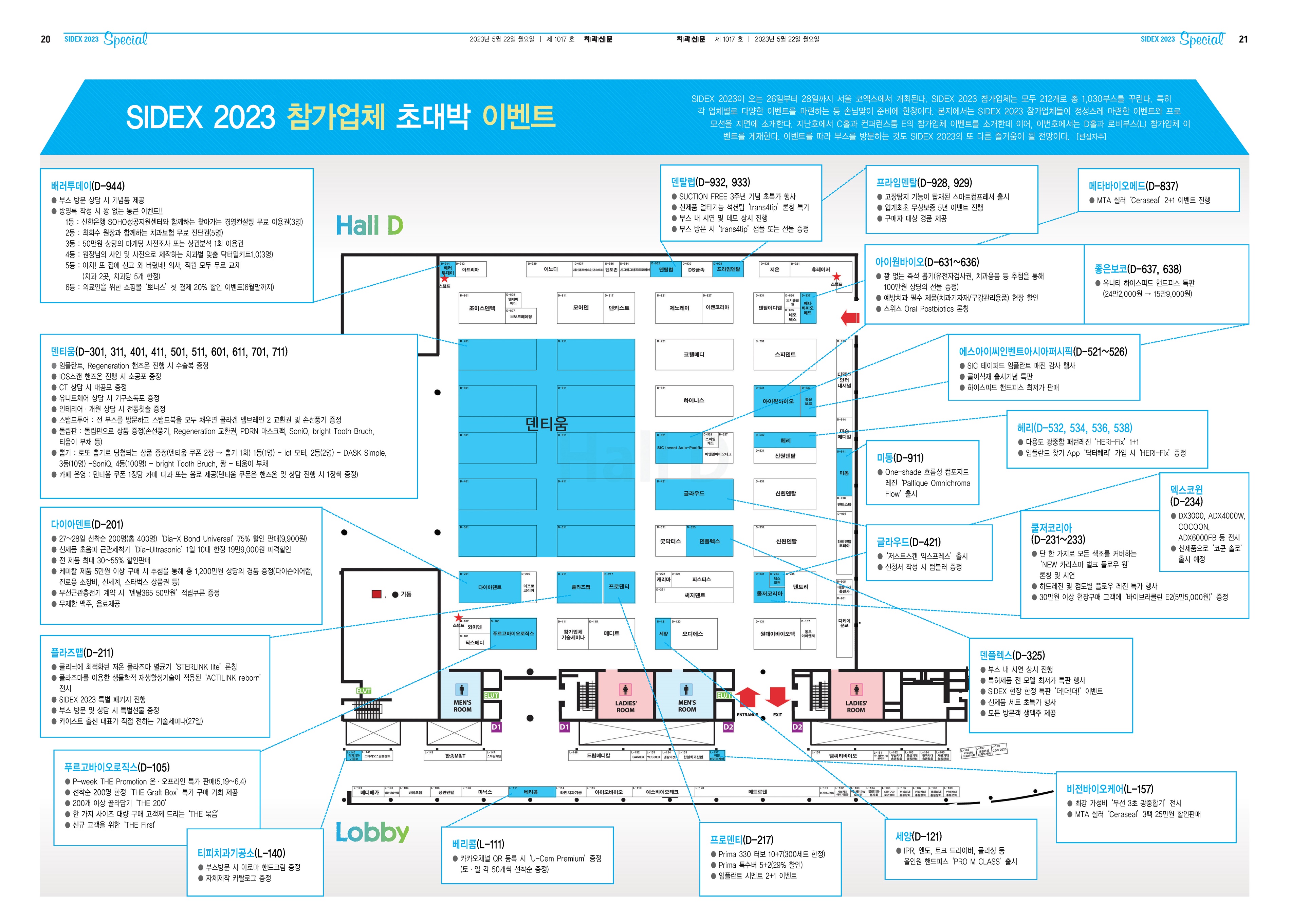 SIDEX 2023이 오는 26일부터 28일까지 서울 코엑스에서 개최된다. SIDEX 2023 참가업체는 모두 212개로 총 1,030부스를 꾸린다. 특히 각 업체별로 다양한 이벤트를 마련하는 등 손님맞이 준비에 한창이다. 본지에서는 SIDEX 2023 참가업체들이 정성스레 마련한 이벤트와 프로모션을 지면에 소개한다. 지난호에서 C홀과 컨퍼런스룸 E의 참가업체 이벤트를 소개한데 이어, 이번호에서는 D홀과 로비부스(L) 참가업체 이벤트를 게재한다. 이벤트를 따라 부스를 방문하는 것도 SIDEX 2023의 또 다른 즐거움이 될 전망이다. [편집자주]