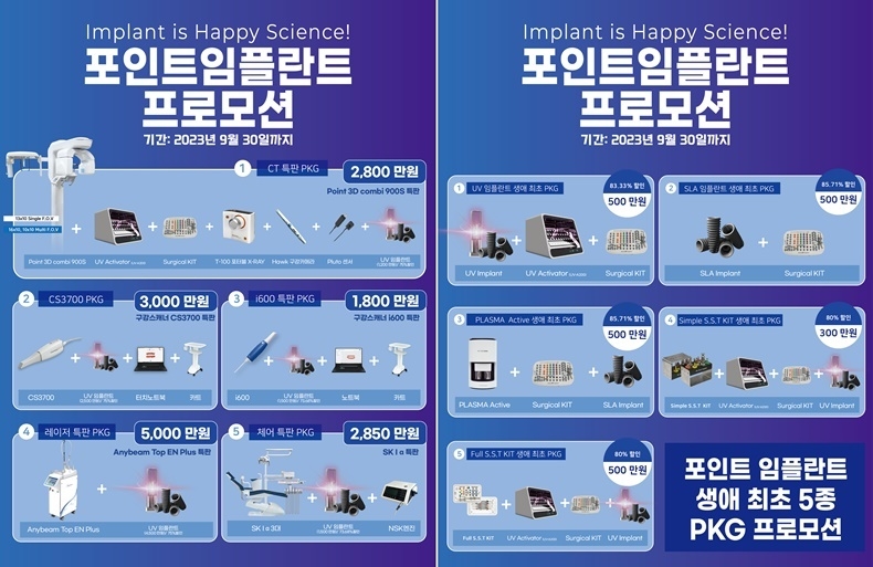 또한 포인트임플란트는 전시회 기간 생애 최초 임플란트 패키지(UV, SLA, PLASMA)를 진행하고, 체어, 구강스캐너, CT 등 다양한 라인업 프로모션 행사를 진행할 예정이다.