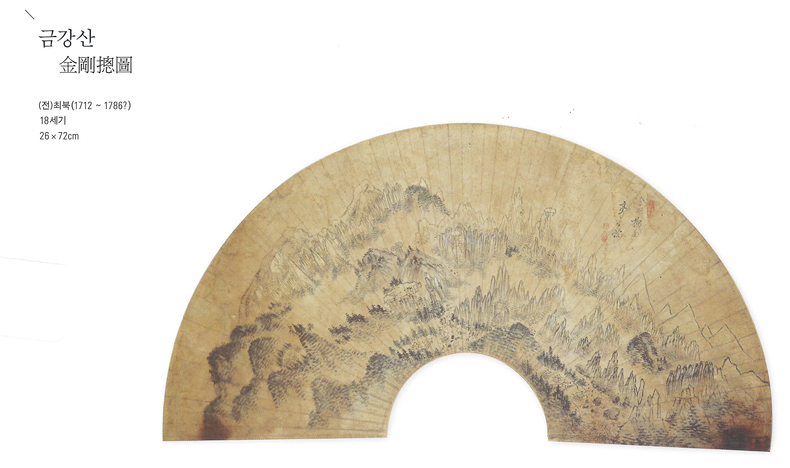 최북의 금강산 그림 2점을 소유하고 있는 평양의 조선미술관은 제목을 금강총도(金剛總圖)7와 금강산전도(金剛山全圖)8로 명명하고 있다. 필자는 평양 조선미술관이 붙여놓은 최북의 금강산 그림 제목에 수정이 필요하다고 생각한다. 금강총도는 금강전경선면(金剛全景扇面)으로, 금강산전도는 금강총면(金剛總面)으로 말이다. 실제 금강산전도 우측 상단에 금강전면(金剛全面)이라고 적힌 최북의 글씨가 보인다. 한자 전(全)과 총(總)은 ‘모두’를 뜻한다. 금강총면(金剛總面)과 금강전면(金剛全面)은 금강산의 전체적인 모습을 그린 그림이다. 따라서 조선미술관이 소장하고 있는 최북의 금강산 그림 2점은 모두 함석태가 소장했던 금강총면(金剛總面)과 금강전경선면(金剛全景扇面)이라고 합리적으로 추론할 수 있다.