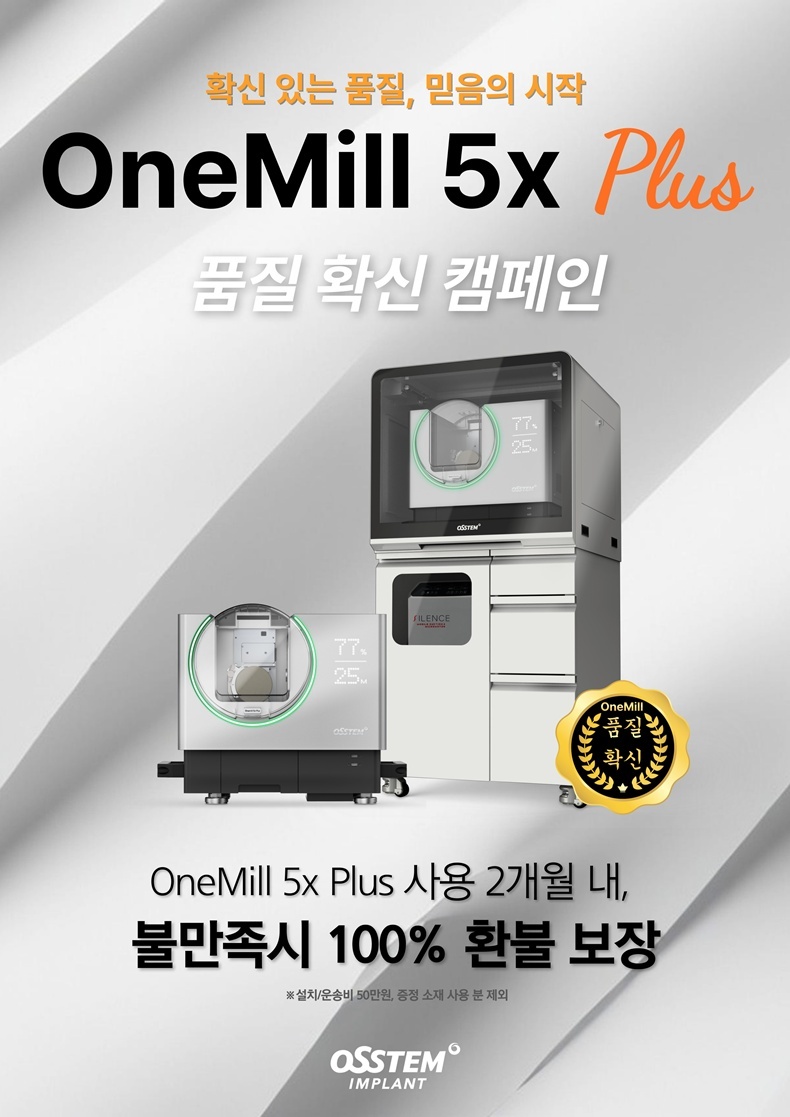 현재 OneMill 5x Plus는 △OneMill 시리즈 고객 대상, 재구매 캠페인 △OneMill 구매 시 소재 증정 100만원 캠페인 등 다양한 이벤트도 진행 중이다. 구체적인 내용 및 중복 할인 등은 오스템 디지털장비PM팀 혹은 영업 사원을 통해 확인할 수 있다.