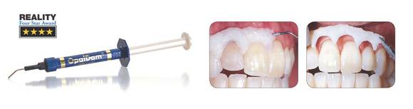 또한 펄이 함유된 흰색으로 광조사를 했을 때 빛을 반사해 불필요한 열 발생을 줄여 연조직이 안전하다. 재료가 도포되지 않은 잇몸부위를 쉽게 구분할 수 있어 거의 완벽한 잇몸 보호가 가능하다.