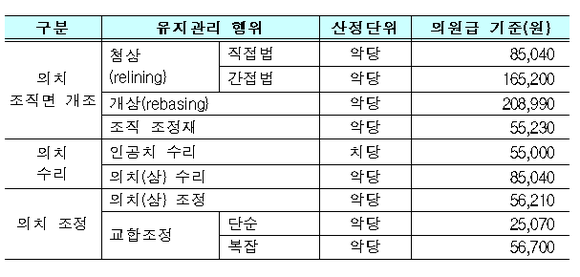 입안예고 당시 ‘인공치 수리를 제외한 나머지 행위들은 동시에 여러 행위를 하더라도 주된 처치 1회만 산정 가능함’으로 명시했던 부분은 ‘별도 산정’을 원칙으로 했다.