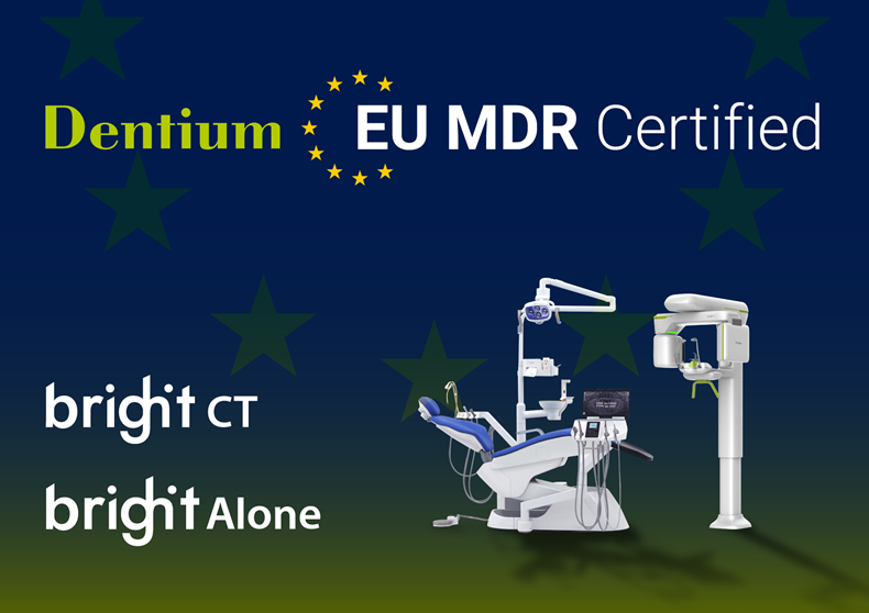 [치과신문_전영선 기자 ys@sda.or.kr] 덴티움이 치과용 영상장비 ‘bright CT’와 유압식 체어 ‘bright Alone’으로 EU MDR(European Medical Device Regulation, 유럽 의료기기 규정) 인증을 획득했다고 최근 밝혔다.